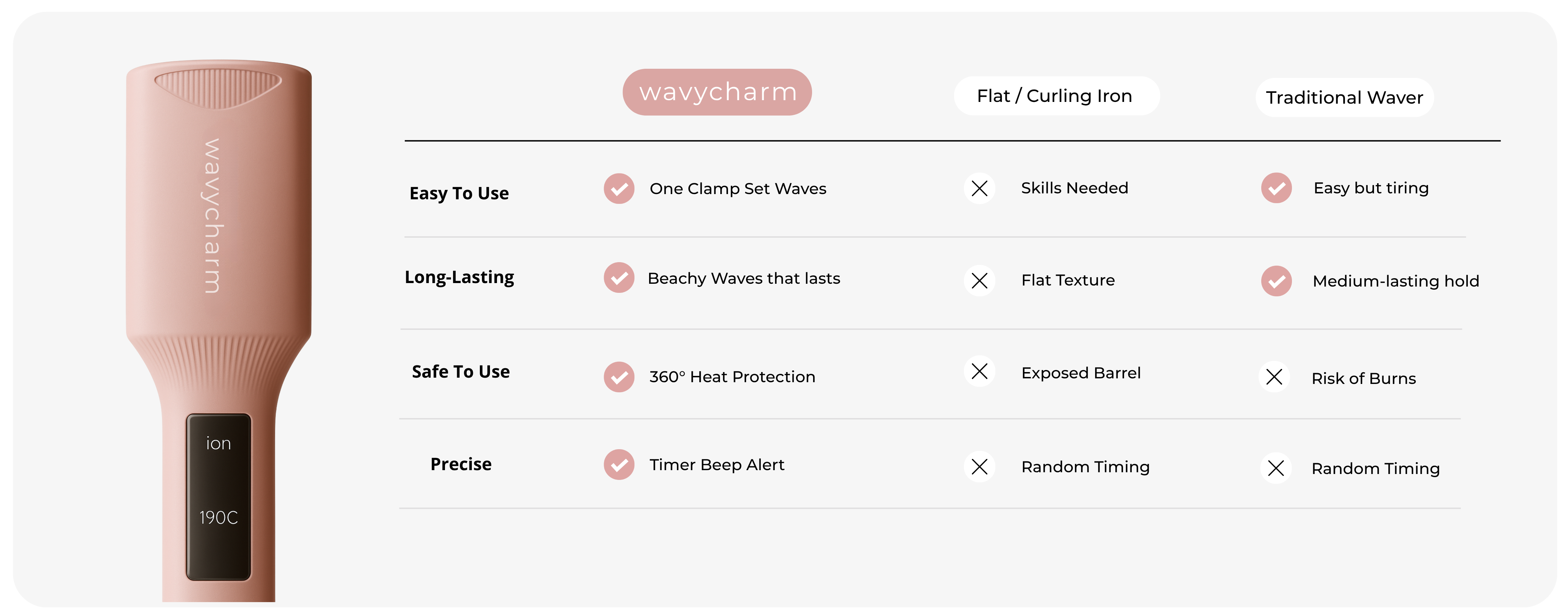 Absolutely! The WavyCharm Duo Waver is super beginner-friendly. The smart "Drop by drop" timer beeps to guide you, the LCD screen shows your exact temperature, and at just 440g, it's really easy to handle. Even if you've never used a waver before, you can get salon-quality waves by following four simple steps: Section your hair, Clamp it in, Hold it (just wait for the beep!), and Release. That's it!